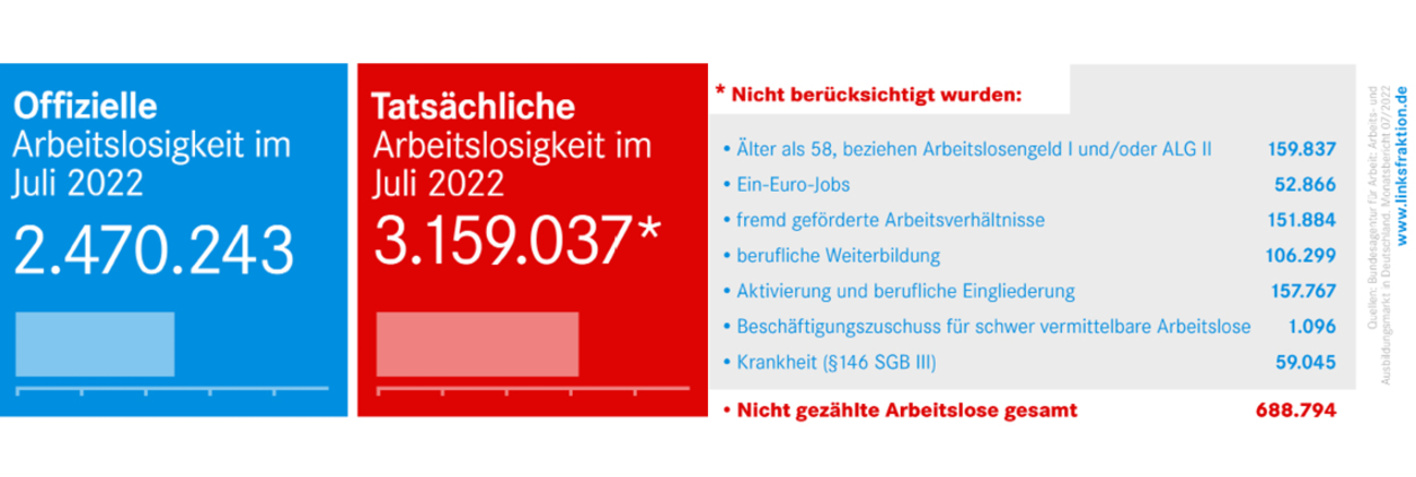 „Pflege, Handwerk, Gastronomie, Luftverkehr - der Mangel an Personal macht sich in Deutschland längst im Alltag bemerkbar. In der aktuellen Debatte um die Zuwanderung von Fachkräften darf nicht vergessen werden, dass laut der geschönten offiziellen Statistik die Arbeitslosigkeit im Juli bei 5,4 Prozent und die Unterbeschäftigung bei 6,9 Prozent lag. Bevor die Bundesregierung sich als global agierende Arbeitsvermittlerin für die Unternehmen hergibt, sollte sie ihr Hauptaugenmerk auf das im Land vorhandene Potenzial richten. Wir brauchen eine sofortige Aus- und Weiterbildungsoffensive, die für Arbeitslose nachhaltige Perspektiven am Arbeitsmarkt schafft“, kommentiert Jessica Tatti, arbeitsmarkt- und sozialpolitische Sprecherin der Fraktion DIE LINKE im Bundestag, den aktuellen Monatsbericht der Bundesagentur für Arbeit. Tatti weiter: