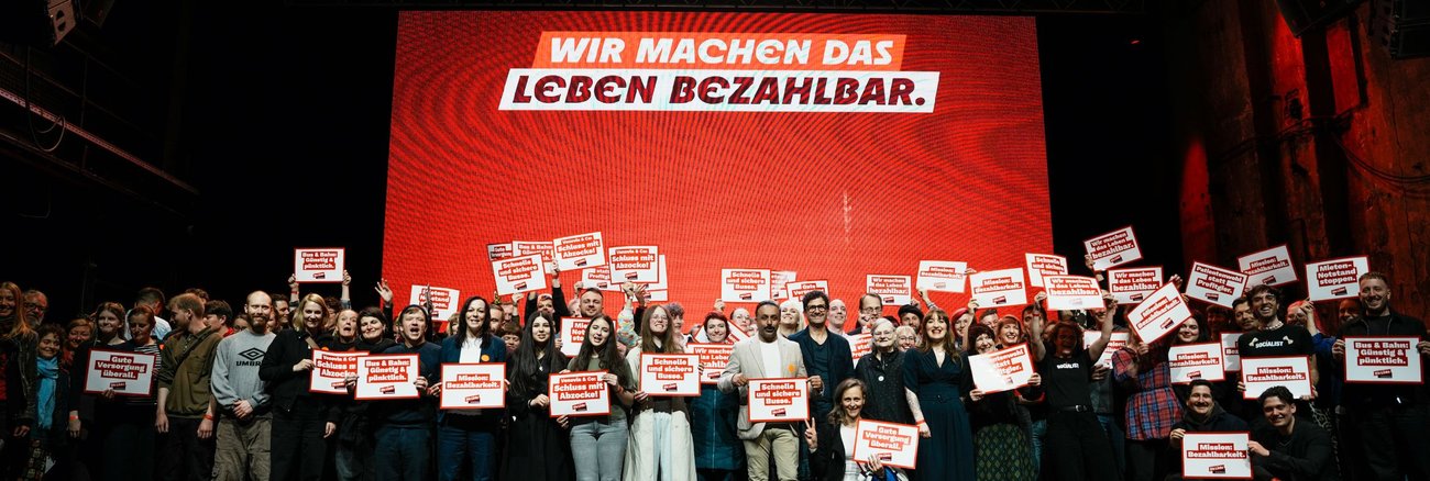 Zum Auftakt des Bühnenprogramms ging es darum, wie das Geld in unserer Gesellschaft verteilt ist – und was es für die Mehrheit der Menschen bedeutet, wenn im Alltag die Preise in die Höhe schießen. Dass die Regierung ausgerechnet in der Krise neue Kürzungen, etwa in der Gesundheitspolitik ankündigt, verurteilte Fraktionsvorsitzende Heidi Reichinnek scharf: „Statt die arbeitenden Menschen immer stärker zu belasten, müssen wir die Arbeitgeber stärker in die Pflicht nehmen – und Überreiche endlich angemessen besteuern, etwa hohe Erbschaften und Vermögen".