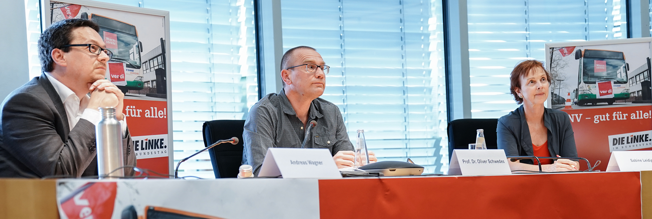 Der Schlüssel für die dringend notwendige Verkehrswende ist der öffentliche Personen Nahverkehr und seine Beschäftigten. In der Online-Diskussion „ÖPNV – gut für alle!“ haben sich die Abgeordneten Sabine Leidig und Andreas Wagner der Bundestagsfraktion DIE LINKE mit Gästen von der TU Berlin, dem VDV, ver.di und Students for Future über den aktuellen Zustand und die Perspektive des ÖPNV ausgetauscht.